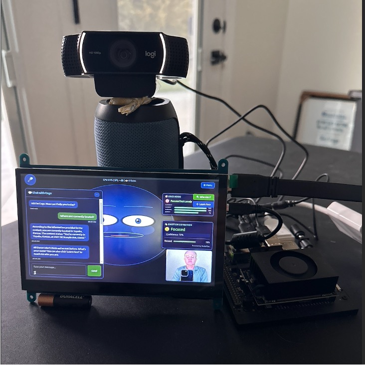 Cogs is designed as a modular humanoid face platform that can see, hear, speak, emote, recognize people, remember, and dream. The platform runs locally on a laptop or Jetson Nano and can be extended to real hardware (servos, mic arrays, depth cameras) without changing UIs.